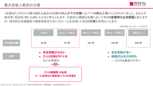 ■ 最大収容人数(店舗規模)別に口コミ数を見てみると?