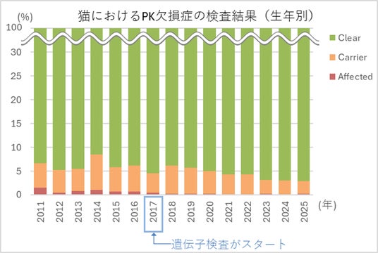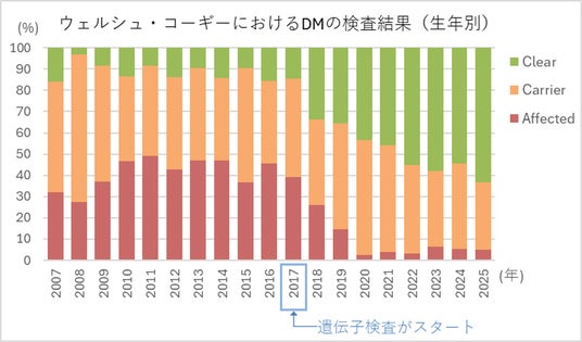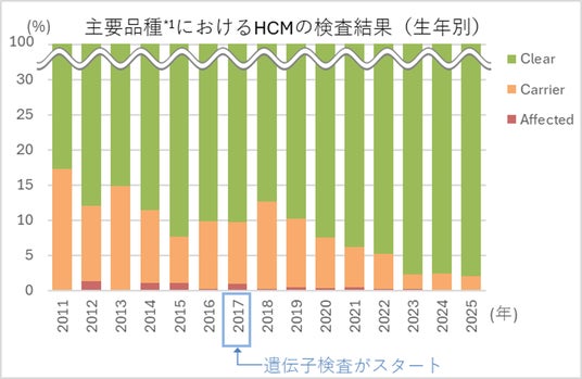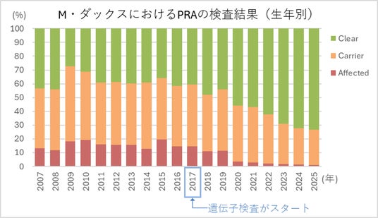 こちらの疾患についても、検査開始以降、リスクを保有する個体の割合が大きく減少しました。