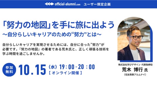 荒木さんには、 著書「努力の地図」のエッセンスと、ご自身のこれまでのキャリアや人材育成の現場で感じていらっしゃったことをもとに、これからの時代を自分らしく働くために必要な“努力のかたち”についてお話しいただきます。