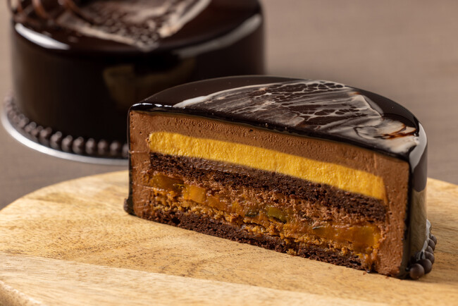 多層的な味わいが魅力のチョコレートケーキをハロウィン仕様に仕上げます。ホテルオリジナルのチョコレート「Grande H」をつかったチョコレートムースの中には、サクサク食感のクランブル、旬のかぼちゃのパンプキンクリーム、そしてコンポートしたかぼちゃに加えてチョコレートスポンジをレイヤー状に配置。グラサージュで艶出ししたケーキの上に飾るガナッシュ入りの大きなクモのデコレーションが特徴です。