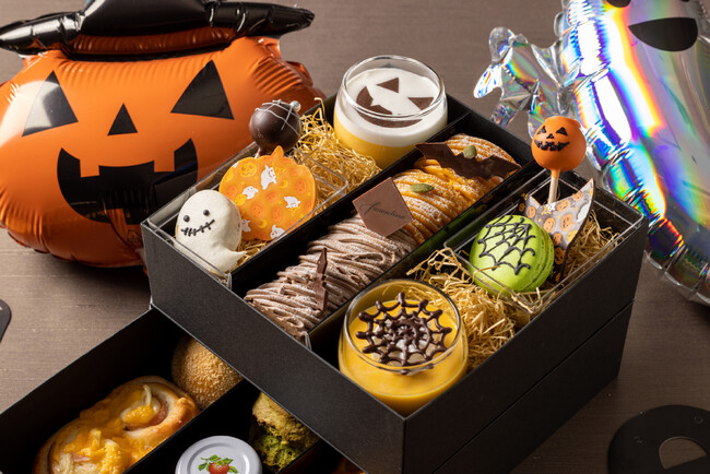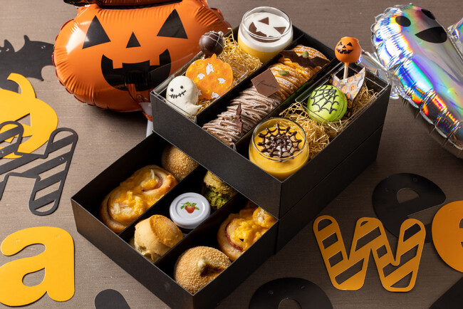 さらに、自宅でゆっくりと楽しむアフタヌーンティーやホームパーティーに最適な「ハロウィン アフタヌーン ティー テイクアウトボックス」が今年も登場いたします。ジャック オ ランタンをイメージしたプリンやクモの巣をデザインしたマカロンなど、オレンジやイエロー、グリーンのカラフルなスイーツとホテルメイドブレッドを詰め合わせました。先着20名様には、ホームパーティーを盛り上げるバルーンなどのデコレーションをプレゼントする嬉しい特典も併せてご用意いたします。