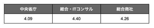 2.総合・ITコンサルは5社、総合商社は7社のクチコミの平均。