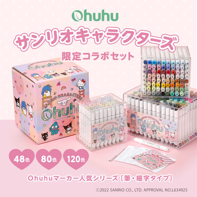 多くのアーティストから支持を受ける、Ohuhuイラストマーカーとサンリオキャラクターが初のコラボ!梱包ボックスからボディデザイン、細部にまでこだわりを詰め込んだ数量限定セットです。展開しているセットは、マーカーシリーズでも人気の高い、パステルカラー1.48色セット2.80色3.ボリューム満点の120色セット。鮮やかなカラーを揃え、セット1つで様々なシーンに活躍します。趣味の時間をより楽しく、プレゼントとしてもぴったりの商品です。
