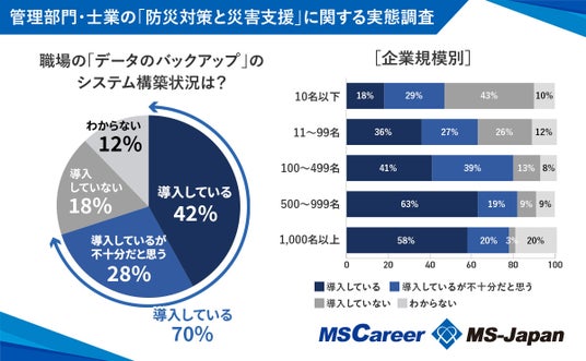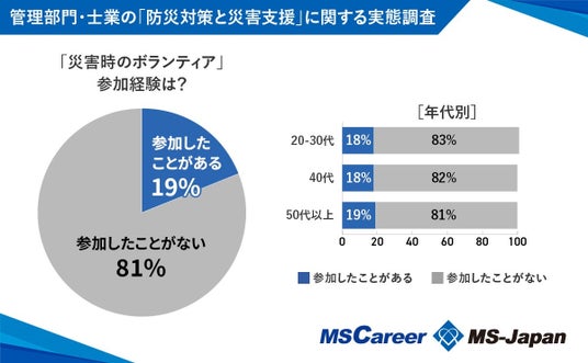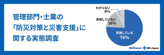 株式会社MS-Japan(本社:東京都千代田区 代表取締役会長兼社長CEO:有本隆浩/以下MS-Japan 証券コード:6539)が運営する、管理部門・士業の総合転職サービス「MS Career(エムエスキャリア)」は、【「職場の防災対策」と「災害支援」に関する実態調査】を発表しましたので、お知らせいたします。本調査は、管理部門・士業のためのビジネスメディア「Manegy(マネジー)」にて管理部門・士業人材335人に実施いたしました。