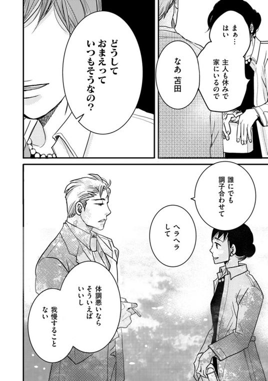 苫田まき31歳、既婚子ナシ。結婚して7年になる夫・恭一にすらなかなか本心をいえない性格…。同僚の結婚式で、デリカシーのない部長に「子供はまだ?」と問われ、愛想笑いしかできない。