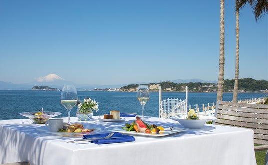 都心から約60分、鎌倉駅から10分のマリーナリゾート「リビエラ逗子マリーナ」の突端にあり、富士山と江の島を望む全席オーシャンビューを備え、「旬を味わう」がコンセプトのモダンイタリアンです。相模湾で水揚げされた魚介類をはじめ、地元契約農家が循環型農法で栽培する新鮮野菜、鎌倉野菜、希少な葉山牛など地産地消にこだわり、アラカルト、コース料理、本格窯の焼き立てピザに定評があります。イタリア本土のミシュラン星付きレストランで修業を積んだ新進気鋭のシェフ小川は、日本料理から料理人を始めた経験から、旬を感じる料理をコンセプトに毎月新メニューを考案し、普段のお食事から記念日使いにも相応しい洗練された空間と料理を提供します。「葉山牛指定飲食店」に指定され葉山牛が食べられる15店のうちの一つです。