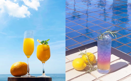 毎回大人気の期間限定ドリンクに、新作ドリンクが登場!3種のグラデーションが映えるサンセットをイメージした『マジックアワーレモネード』と、旬を迎えた甘夏みかんカクテル