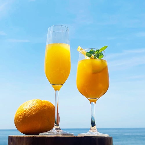 旬のフレッシュな甘夏みかんに、神奈川県産みかんジュース、ピーチジュースを合わせた、ほどよい酸味と甘みがアクセント。初夏にぴったりの爽やかな味わいのドリンクです。カクテルはスパークリングワインと合わせて、フルーティーなミモザ風でご提供します。