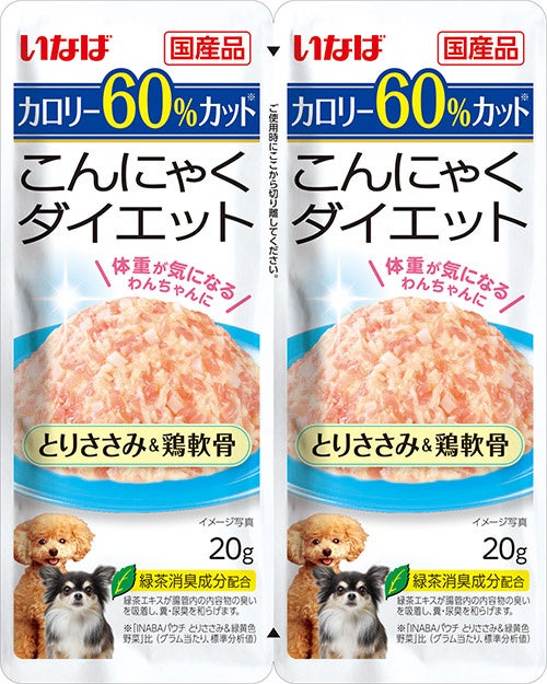 いなばペットフード株式会社(いなば食品グループ 本社:静岡県静岡市清水区由比)は、わんちゃん用「こんにゃくダイエット」から、1袋20gの食べきりサイズを2つつなげた「ツインズ」を新発売いたしました。真ん中で簡単に切り離せるので、いつでもフレッシュな状態で、あげたい分だけ与えることができます。