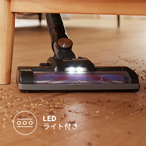 フロアヘッドにLEDライト付き、掃除中の場所の周辺を明るく照らして、薄暗い隅の掃除にもラクになります。
