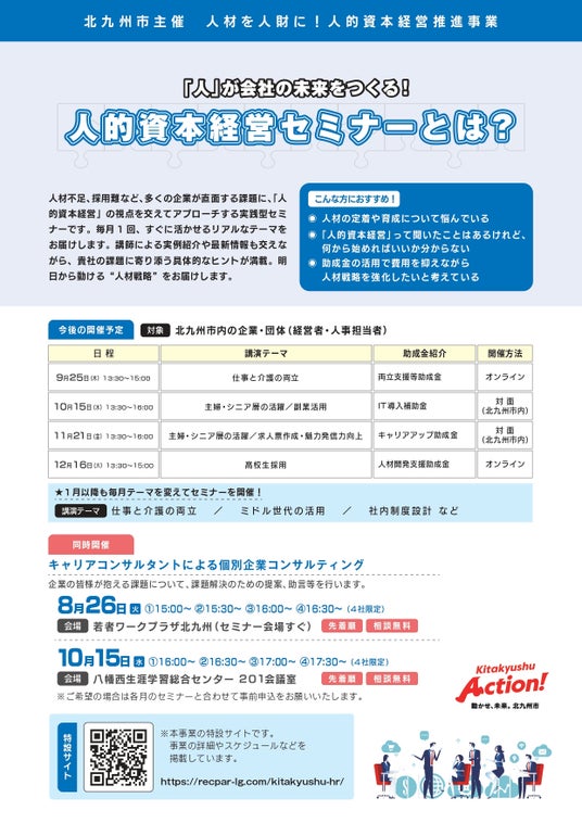 採用難・人材不足時代を乗り越えるための企業向けセミナーを北九州市で開催します。
