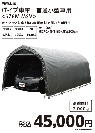 商品名: 南榮工業 パイプ車庫 普通小型車用 678M MSV
