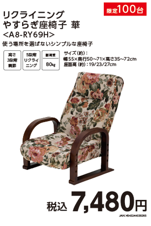商品名: リクライニング やすらぎ座椅子 華 A8-RY69H