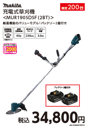商品名: マキタ 充電式草刈機 MUR190SDSF(2BT)