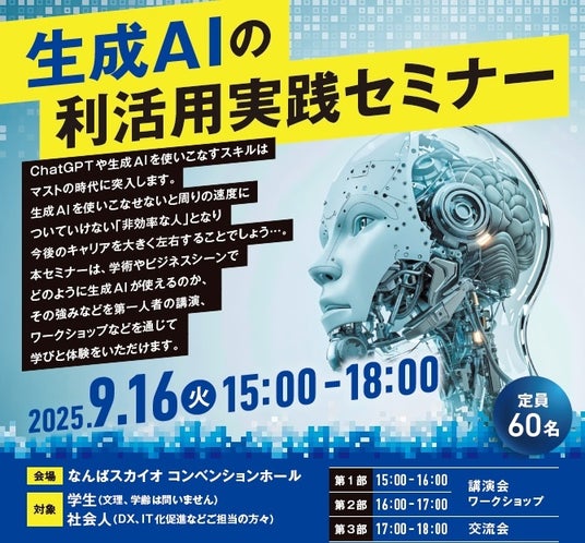 セミナーでは、生成AIの最新活用事例や業務効率化・新規ビジネス創出に役立つ具体的なノウハウを実践形式で学べます。初心者から現場の担当者までどなたでも参加可能。業界の第一線で活躍する講師陣による講演やワークショップも実施予定です。