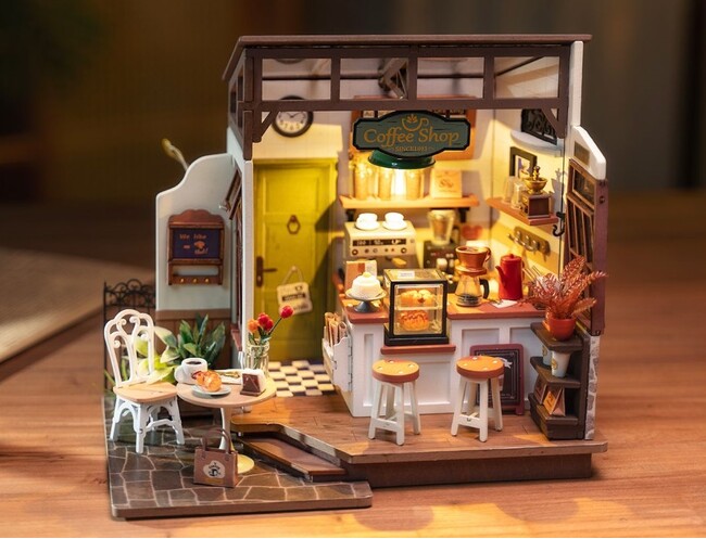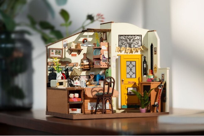 つくるんです(R)シリーズの中でも、人気のカフェ&キッチンモチーフのミニチュアハウスがつくりやすくなって新登場しました。時間のかかる色塗りの工程や難易度の高い植物をつくる工程を省略することで、見た目の可愛さはそのままに、初心者の方でも楽しみながら完成させることができるミニチュアハウスに仕上げています。