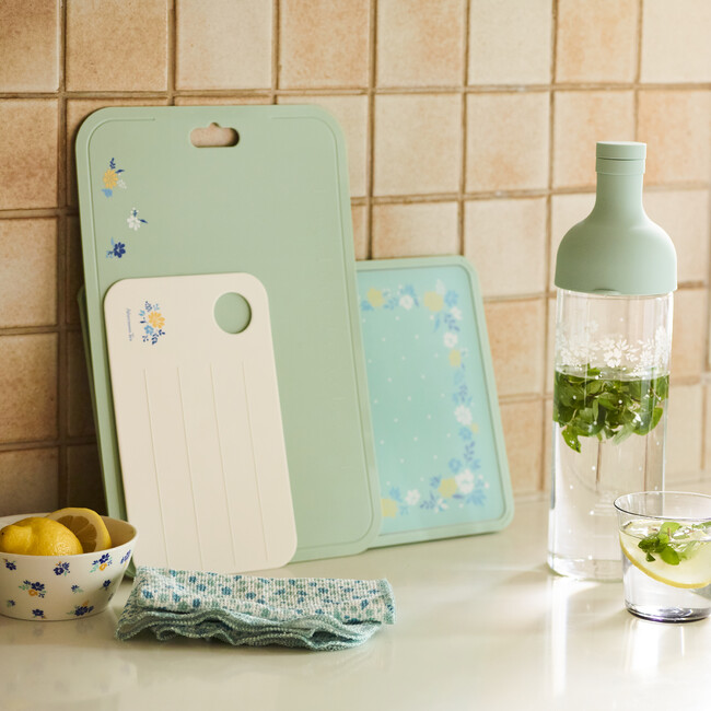 ボウル&トングセット ¥4,501、スポンジクロスセット ¥990、カッティングボードセット ¥1,650、抗菌カッティングボード ¥1,760、冷水筒ボトル750ml ¥2,640(全て税込み)