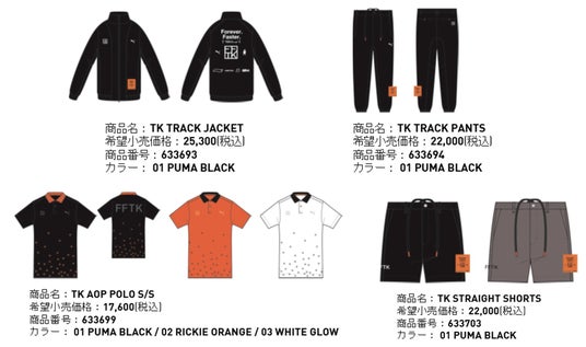 「FFTK ORANGE COLLECTION」は 2/21(金)よりプーマ公式オンラインストア(https://jp.puma.com/)、プーマアプリ、プーマストア大阪、京王百貨店新宿店 プーマゴルフ、あべのハルカス近鉄本店 プーマゴルフ、XEBIO、VICTORIA、GOLF5、つるやゴルフ、スポーピア シラトリ、ゴルフパートナー、GDOにて順次発売開始いたします。一部3月発売商品もございます。