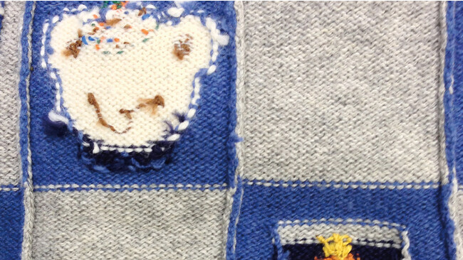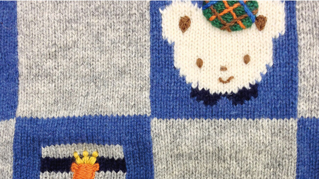 インターシャ編みとは、『目取図(めとりず)』と呼ばれる設計図に従って、色糸を、一本、一本、手で切り替えて編み上げていきます。柄を編みこむ技術としては、最も難しい技法で、表も裏と同じ柄になり色の境目が重ならず美しい仕上がりになります。