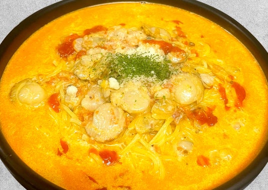 メインとなるパスタは全て『淡路麺業』のもちもち生パスタを使用!濃厚なチーズのコクと厚切りベーコンの旨み、温玉のまろやかさが絶妙に絡み合う『濃厚カルボナーラ温玉添え』プリプリのえび旨味たっぷりのあさりと帆立を贅沢に…トマトのほどよい酸味と魚介の旨味が凝縮された季節限定『海鮮トマトクリームスープパスタ』濃厚な旨味のプリッとした牡蠣、カリッと香ばしいベーコンとほうれん草にパルメザンチーズで仕上げた食べ応え抜群な季節限定『牡蠣とベーコンほうれん草のカルボナーラ