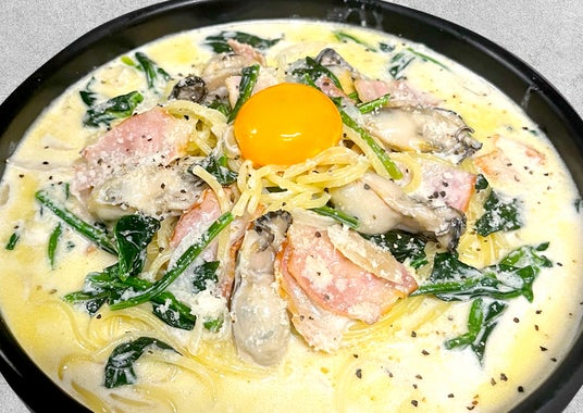 牡蠣とベーコンほうれん草のカルボナーラスープパスタ¥1,800