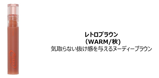 フィルムカメラのセピアフィルターをまとったようなフォギーブラウン×ヌーディーオレンジの組み合わせで、レトロな雰囲気に仕上がる9色パレットと、ナチュラルヘルシーなブラウンと女性らしいほのかな赤味で抜け感のある唇に仕上がるティントで、洗練されたニュートラルメイクが完成します。