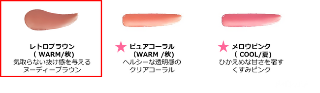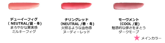 なめらかな使用感とべたつかない保湿感、ツヤ感、色持ちを実現。