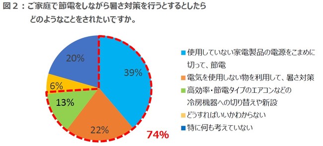 2割超電気料金の上昇の中、この夏の節電の意向を聞いたところ、74%の方がなんらかの工夫で節電しながら
