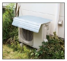 効果アップのひさし付きで、室外機を外気、日光、風等から守ります。パネルと室外機の間に空間があるた