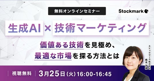 先端の自然言語処理AIを活用した情報収集サービス『Anews・Astrategy』を提供するストックマーク株式会社(以下、「当社」)はオンラインセミナー『生成AI × 技術マーケティング ─ 価値ある技術を見極め、最適な市場を探る方法とは』を3月25日(火) に開催致します。
