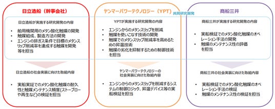 船舶の燃料については、将来的にはメタノールやアンモニア、水素の活用などが考えられていますが、足元では今すぐ実現可能な低排出燃料としてLNG燃料の普及が進んでいます。しかし、LNG燃料はCO2削減効果がある一方で、メタンスリップが課題となっています。 日立造船、商船三井、ヤンマーPTは、本事業を通じて早期にメタンスリップ削減技術を確立させ、国際海運分野における温室効果ガスの排出削減に積極的に貢献していきます。