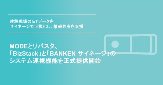 現場データの活用を支援するシリコンバレー発スタートアップMODE, Inc.(本社:米国カリフォルニア州、日本支店:東京都千代田区、CEO:上田 学、以下 MODE)と株式会社リバスタ(本社:東京都江東区、代表取締役:高橋巧、以下 リバスタ)は、MODEが提供する「BizStack(ビズスタック)」と、リバスタが提供する建設現場ICT機器ソリューション「BANKEN(バンケン)」のデジタルサイネージ「BANKEN サイネージ」のシステム連携機能(以下 本機能)を、2026年4月20日より正式に提供開始しました。(※1)