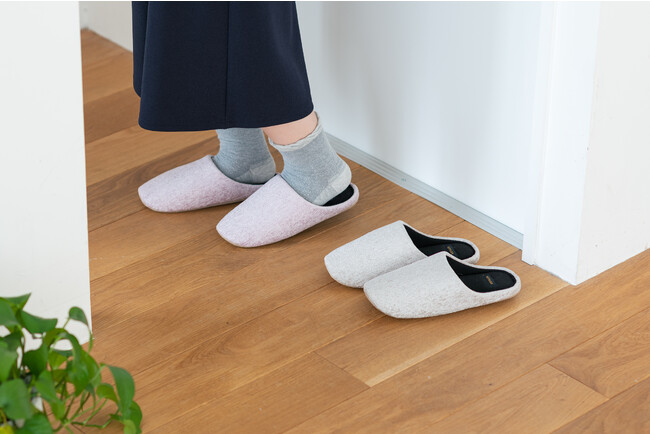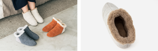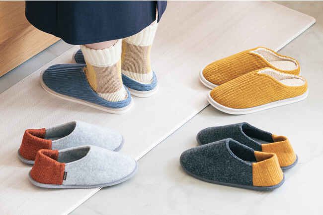 前作に引き続き、今回の新作でも見た目のデザイン性はもちろん、機能性も重視し、3種類のスリッパを開発。床に水滴などが飛び散るキッチンでも濡れないアイテムや、冷えを取ってくれるブーツタイプまで、おうち時間のさまざまなストレスに応えた、ありそうでなかった機能が付いたスリッパです。