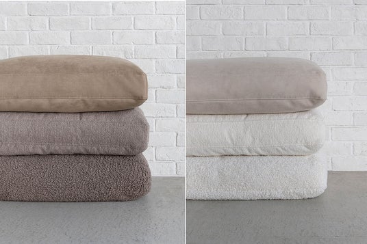 4種類のサイズバリエーションと、ハイタイプ・ロータイプを選べる脚の仕様により、お部屋の間取りや用途に合わせた柔軟なコーディネートが可能です。背クッションには、表面が起毛したスエード調の滑らかな肌触りのSUD生地、表面に柔らかい肌触りのTIM生地、独特な凸凹の質感で立体感のあるGL生地の3種類をご用意し、それぞれSUD生地:CREAM/SAND、TIM生地:WHIP/BEIGE、GL生地:WHIP/BEIGEのカラーからお選びいただけます。