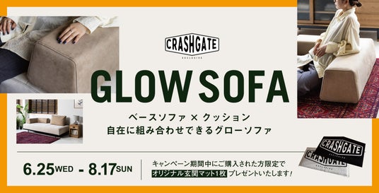 新アイテムの発売を記念し、6月25日(水)から8月17日(日)まで特別キャンペーンを実施いたします。CRASH GATE直営店舗にて期間中にグローソファをご購入いただいたお客様には、オリジナルの玄関マットを1枚プレゼントいたします!