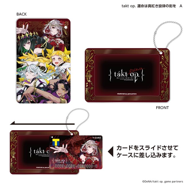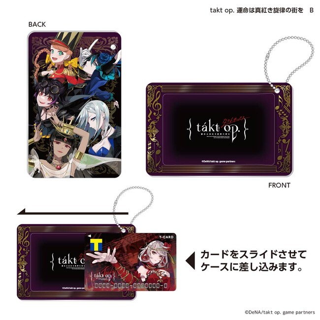 Tカードとセットで持ちたいスライドカードケース。ゲームアプリ『takt op. 運命は真紅き旋律の街を』のキャラクターが大集合!スライドカードケースはTカードのみならず、ICカードを持ち運ぶ際にもぴったりです。