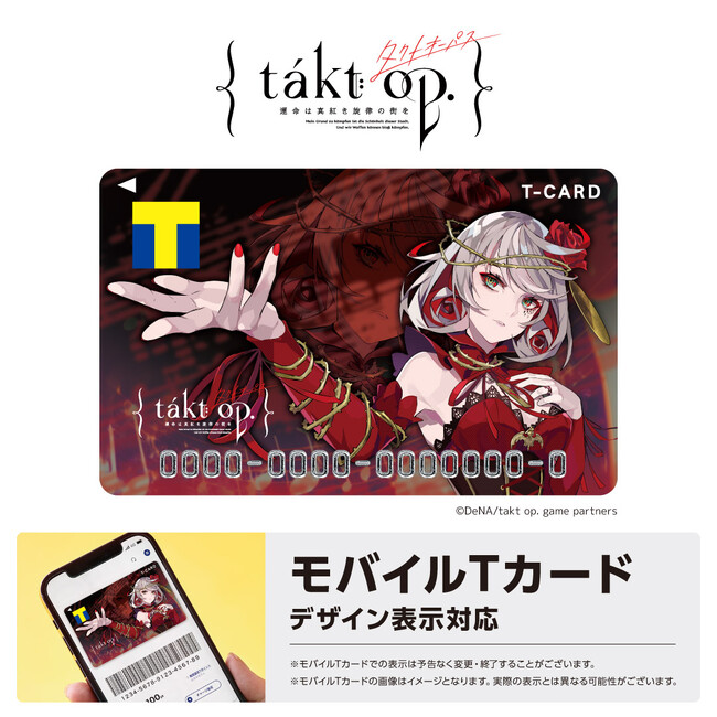 カルチュア・エンタテインメント株式会社は、Life styleに“楽しさ”を提供する「FAN+Life(ファンタスライフ)」にて、ゲームアプリ『takt op. 運命は真紅き旋律の街を』が2023年6月28日(予定)にリリースされること記念し、同作品とコラボレーションしたTカードが登場です。本日6月12日(月)12:00より、FAN+LifeにてTカードの発行受付を開始するとともに、オリジナルグッズの「スライドカードケース」や「アクスタ付きカードスタンド」の予約受付も開始いたします。