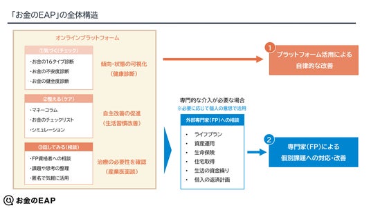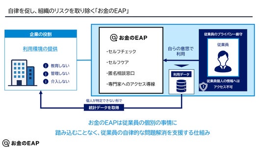 こうした課題を踏まえ、当社は「企業が介入しないこと」を前提としながら、従業員が自律的にお金の問題を解決できる環境を提供する仕組みとして、「お金のEAP」を開発しました。