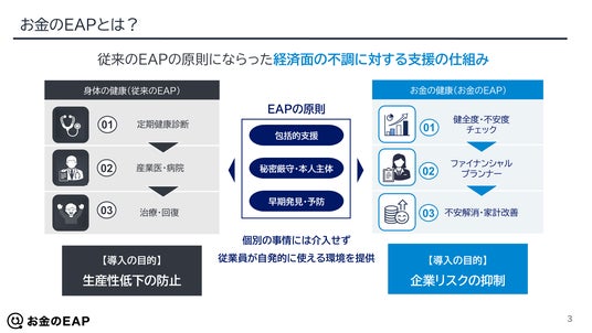 その従来のEAPの原則にならった経済的健康を支える仕組みを「お金のEAP」と位置付けています。