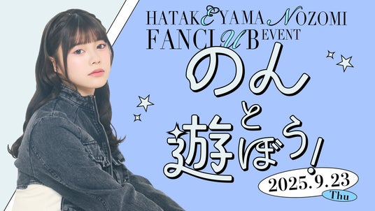 2025年9月23日(火・祝)、畠山希美のファンクラブ会員限定イベント『のんと遊ぼう!』が開催されます。今回は初開催となるファンクラブイベントで、日頃の感謝の気持ちを込めた特別な一日をファンの皆さまにお届けいたします。
