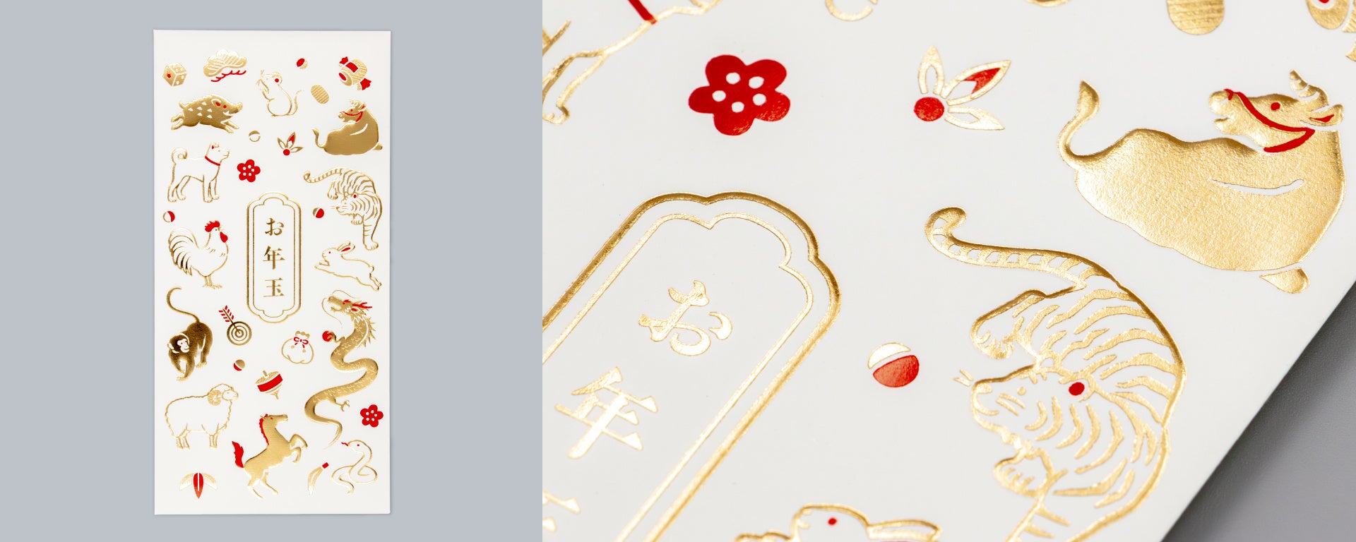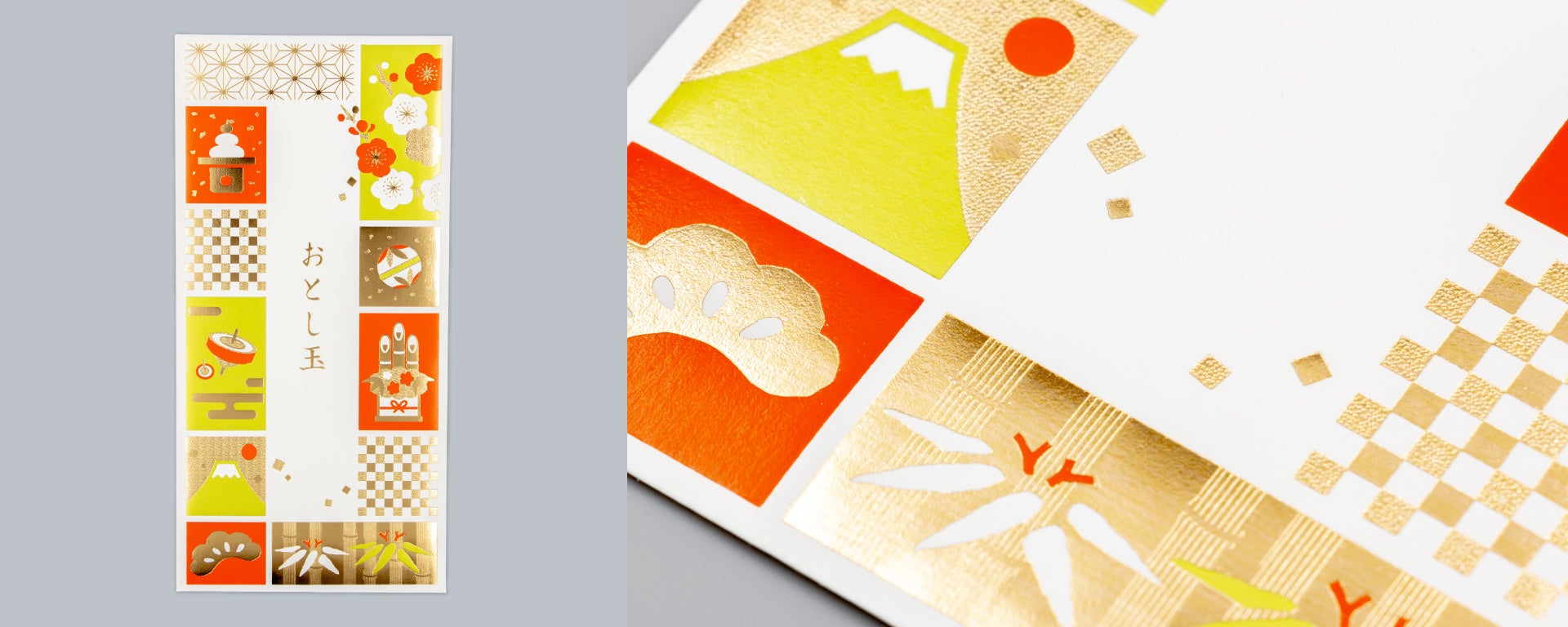 箔押し加工のみで絵柄を表現したお年玉袋です。