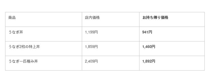 さらに今年も、お持ち帰り特別価格(20%OFF)をご用意しています。「うなぎ丼」の場合、なんと1,000円以下でご購入いただけます!