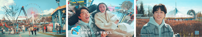 “ゆうた”と”まゆう”の二人が遊園地でデートを楽しんでいます。デートを楽しむ中で、「絶叫マシンが平気」「心霊・オバケ系が苦手」「お揃いのものが好き」など、事前にペアーズの機能「マイタグ」を通じて知っていたお互いの相性を確かめ合い、”ゆうた”が「やっぱりこの人と合ってるな」と実感するまでの様子を描きます。ペアーズなら、趣味や価値観、人柄を事前に知り、相性の良い相手と出会えることを伝えるCMです。