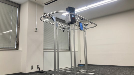 検証用レールの寸法は約2m(L)×1m(W)×1.5m(H)