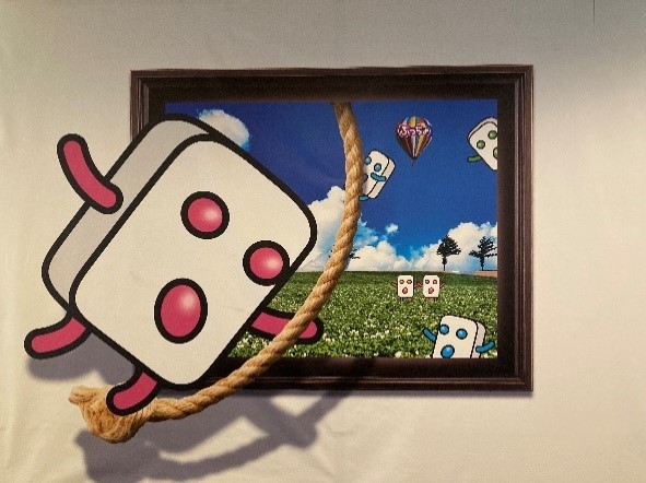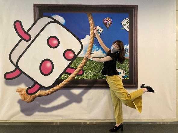 ぷっちょくんの横で撮影するとぷっちょくんと一緒にロープ遊びをしているように撮影できるトリックアートも併設しています。