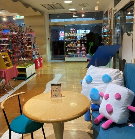 コーヒーやドリンクもお楽しみいただけるUHA味覚糖の直営店「UHAサテライトショップ」。