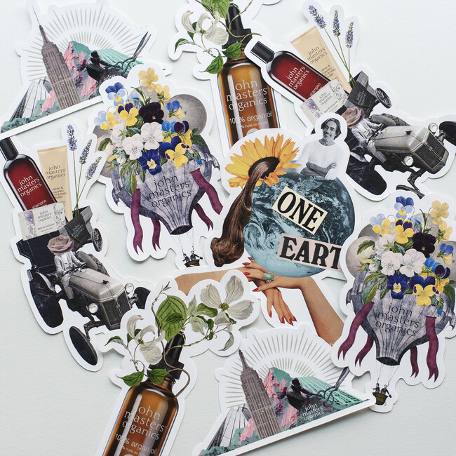 店舗または公式オンラインストアでお買い物をすると、コラージュアーティスト・Q-TAが手がけたイラストの限定ステッカーをプレゼント!全5種類のステッカーは、ブランドコンセプトページオリジナルのイラストから誕生しました。
