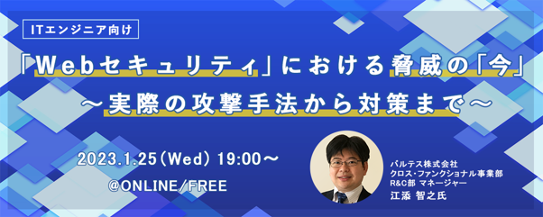 ITエンジニアの新しい働き方を提案する株式会社PE-BANK(東京都港区/代表取締役 高田 幹也)は、2023年1月25日(水)19時より、ITエンジニア向けオンラインセミナー『「Webセキュリティ」における脅威の今 ~実際の攻撃手法から対策まで~』を開催いたします。