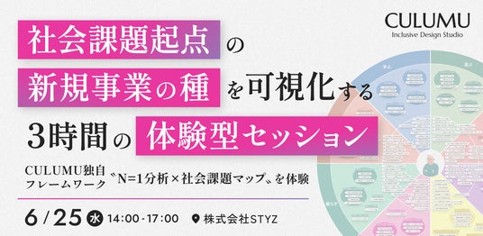 株式会社STYZ(東京都渋谷区、田中辰也 代表取締役社長)は、当社内で運営するインクルーシブデザインスタジオCULUMU(くるむ)主催の「社会課題起点の新規事業の種を可視化する」ワークショップを2025年6月25日(水)14時から開催します。