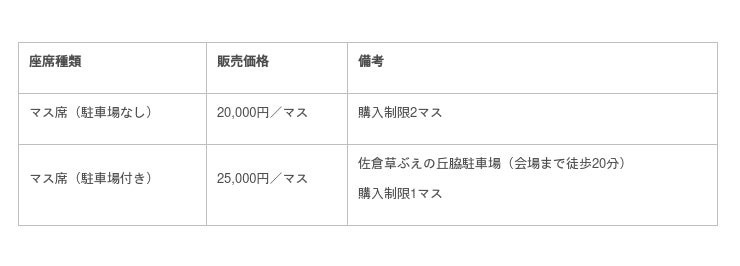 ※35,000円以上広告協賛した方に桟敷券を配布(駐車場付き)